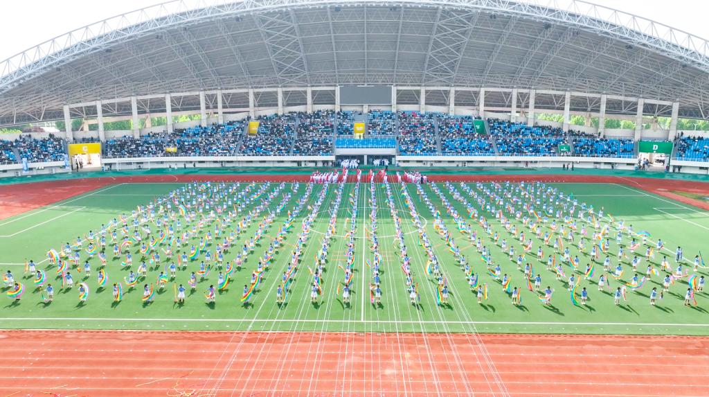 (文/陈欢 图/余有庆 李雯静 冷全宇 齐梦扬 刘佳)春和景明,活力飞扬。4月22日,东校区体育中心彩旗招展,学校第十一届运动会开幕式火热举行。在校校领导,各单位负责人,师生及运动员齐聚运动场,共同参加这场充满激情与活力的体育盛会。运动会通过官方视频号线上直播。开幕式由党委副书记、副校长吴杰霞主持。