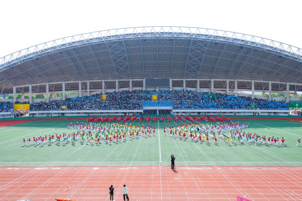 校长闫兵致开幕辞并宣布郑州工业应用技术学院第十一届运动会开幕。他代表学校党政领导班子向运动会的开幕表示热烈祝贺,向全体工作人员、裁判员、志愿者致以衷心感谢,向全体运动员致以亲切问候。闫兵指出,运动会是体能与速度、力量与耐力的竞技盛会,更是一次意志与精神、团结与文明的全面检阅。学校始终坚持立德树人根本任务,把强健体魄、健全人格、锤炼意志融入人才培养全过程。他希望,全校上下以运动会为契机,深入落实“健康第一”教育理念,以健康学校建设为引领,强化五育并举,推进五育融合,促进学生身心健康、全面发展;参赛运动员将赛场上不畏困难、永不言弃的体育精神转化为勤学善思、锐意进取的学习动力与工作热情;将强健的体魄、昂扬的斗志融入专业学习、成长成才的全过程,努力成长为德智体美劳全面发展的高素质应用型人才,为学校建设高水平应用型本科高校贡献青春力量。